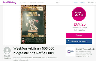 Only one single prize of a Collectors Edition Space Marine Terminator Chaplain BNIB, entry to the prize raffle is via a one pound donation, each single pound will qualify for a single entry. Winner chosen by me using random number generator and winner notified by a BlogPost here on the blog jsut after Christmas Day 2016. No cash alternatives, items lost in post will not be refunded, i will obtain proof of postage and post to wherever the winner notifies me via the comments on the blog or PM via Google etc. Its a charity giveaway - I bought the prize already, the charity gets all the funds via Just Giving.com