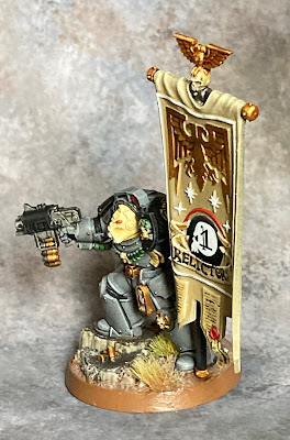 The banner I chose to do linen, or off white as all the other banners are grey or black, so the other accent colour I have is bone. And being 1st Co. they need a 'white-ish' banner.